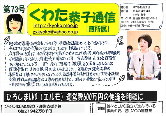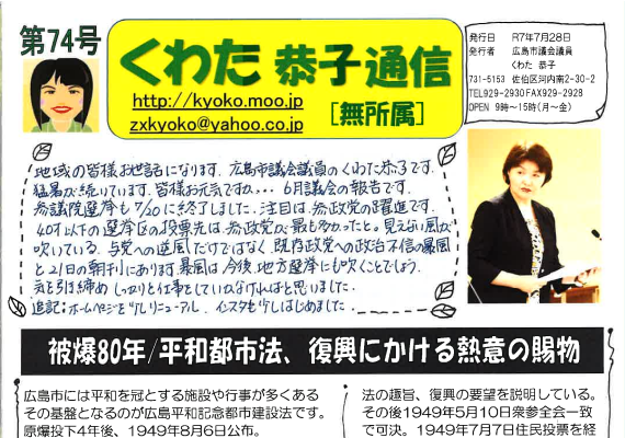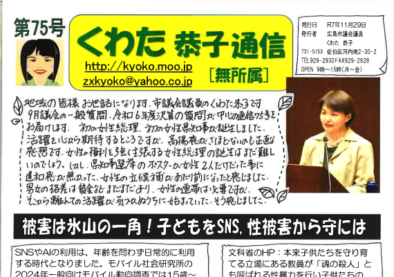 くわた恭子のこれまでの活動を記した、手書きの通信です。ぜひご覧ください。