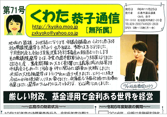 くわた恭子のこれまでの活動を記した、手書きの通信です。ぜひご覧ください。