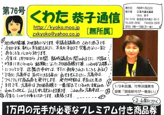 くわた恭子のこれまでの活動を記した、手書きの通信です。ぜひご覧ください。
